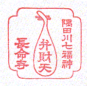 ここに寄らないという手はありません。冷たく曇る雪空の下を歩き始めてまだ半刻(はんとき)ですが、だいぶ冷えてきました。桜餅と一緒に供されるたっぷり目の熱いお茶と一緒にいただく、甘さを抑えた桜餅が憩いのひとときを作ってくれます。 ![]() 長命寺の弁天さまのスタンプです。 |