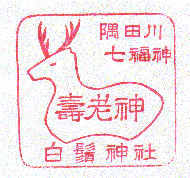 七福神のある神社お寺はそれらしい像や社があるのですが、ここ白鬚社では見当たりません。愛想の良い巫女さんに「寿老人はどこですか?」と聞いたら、「この神社全体です」と丁寧な返事が返ってきました。![]() 白鬚神社の寿老神スタンプです。 |
