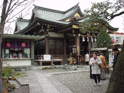 どうです?おめでたいでしょう。この絵はね、百花園で入手した江戸時代の「宝船」(おたから)です。「かつぎや」という落語にあるでしょう、「お宝、お宝、お宝・・初夢におめでたい宝船はいかがですか」・・って、売って歩くあのお宝の復刻刷りです。「なかきよのとおの眠りの皆目覚め波乗り船の音のよきかな」・・終いから読んでもおんなしだという、あの歌もこの絵があってこそなんです。 七福神めぐりに七つのご利益というのを考えてみましょう。 ひとつ 正月早々いい仕事ができた(ような気がする) ふたつ 寒空の下を歩いて足が丈夫になった(ような気がする) みっつ 神社にもお寺にも万遍なくお参りできた(ような気がする) よっつ いろいろな故事来歴を学んで利口になった(ような気がする) いつつ 空腹を我慢して胃が丈夫になった(ような気がする) むっつ 昔のひとと同じ楽しみを見つけた(ような気がする) ななつ 一緒に歩いて夫婦円満になった(ような気がする) まあ、ひとそれぞれですからな。他人に吹聴したり強要したりするものではありませんが、これからもお正月にどこといって行くあてのないときは、七福神でひと歩きすることにしましょうか。へい、ご退屈さまでした。 平成15年1月5日 稲林記 |