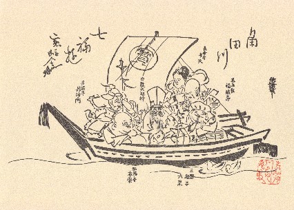 ![]() お船に乗せて飾れば、お目出度い「七福神は宝の入船」 バンザイ! |