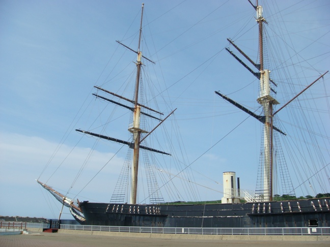 え〜、このところしばしば出かけている北海道の函館ですが、前から行きたい行きたいと思っていたのが江差でした。江差と言えばもちろん「江差追分」です。いまひとつは幕末戊申の函館戦争で戦場となったこともよく知られています。函館から江差、地図で見ると道南の渡島半島の中におさまっているので、近いように見えますが、間に山があったりしてそう簡単には行けないようです。今回も八戸で乗り換えた特急「白鳥」で函館にやって来ましたが、長い青函海底トンネルを出て間もなくの駅が木古内、その木古内から函館とは反対の西方に向う江差線の終点が江差です。函館に泊った翌朝、駅前の朝市で朝食を食べて、7時08分発のJR北海道、江差行きに乗りました。江差までの所要時間は2時間と10分ほど、時間はまあまあなのですが、列車の本数が極端に少ないのです。この日も、明るいうちに函館に帰りつくためには江差発13時13分の函館行きに乗らないといけません。そういう制約がありながらも、江差への恋慕やみ難く、家人を伴って出かけました。 終点江差駅へは9時19分に到着しました。帰りの列車まで4時間足らずの間に駅に戻って来なければなりませんが、とりあえずは徒歩で海の方角を目指しました。通りかかった美容室の壁をみると、江差追分のひと節が描かれているではありませんか(上の写真)。江差にやって来た実感がわきました。海岸へ出ると右手の方向に写真で見たこのとある「かもめ島」の遠景と最初に向かう「開陽丸」と思しき帆船の姿があります。 ![]() 開陽丸は徳川幕府がオランダに発注して建造した当時最強の軍艦でしたが、幕府に引き渡された翌年、1868年(慶応4年)の正月に起こった鳥羽伏見の戦いで負けた徳川慶喜を大阪から江戸に運んだ後、榎本武揚率いる旧幕府軍の起した函館戦争に参加し、江差を占拠していた陸兵を援護するために江差沖に到着して砲撃をおこないましたが、11月15日夜半に暴風雪のために座礁して、10日後に沈没してしまいました。進水から3年、引き渡し後2年足らずで姿を消した悲劇の軍艦と言ってよいと思います。 ![]() 開陽丸が沈没した場所は1975年に文化財埋蔵地域に指定されました。その後引き揚げられた遺物の展示施設として往時の船体が復元されて、現在は、江差開陽丸青少年センターとして一般に公開されています。 ここに書いたことはすべて、船内の説明やパンフレットから要約したものです。ほとんど予備知識を持たずに訪れた私のような見学者にも、当時の軍艦内の様子が手に取るように分かる親切な展示が行われています。開陽丸の甲板から間近に眺める江差の象徴、かもめ島も目に焼きつきました。 開陽丸の見学を済ませて、かもめ島を左手に見ながら海岸沿いの道を進んだところに目指す「江差追分会館」がありました。 ![]() ここでは日に何回か江差追分の実演が行われると聞きましたので、その第1回目、11時からの実演の前に会館内の展示を見て歩きました。 ![]() 最初に説明されているのが、江差追分のルーツとされている信州の追分節です。軽井沢から小諸に向かう街はずれ、旧中山道と北国街道の分かされ(追分)があることは承知していましたが、この地で唄われていた追分節が、新潟を経由して北前船で江差に伝わっていったということです。説明パネルには音源が仕掛けられていて、信州の追分節を聞くことが出来ます。 ![]() 江差地方の風土と追分節のパネルには、「かもめの鳴く音にふと目をさまし…」という江差追分の代表的な文句が記されています。越後、あるいは更に遠く、能登の方からにしん漁で賑わう江差を目指してきた人々が、長い船旅の末に見えてきた山影に抱いた想いはいか程であったかと考えさせられます。 ![]() 11時からの実演は若い女性ふたりによって行われました。写真の左側が第44回江差追分全国大会の優勝者寺島絵美さん、左側、三味線を弾いているのが小野みかさんと紹介されました。「ソーラン節」、「道南なっと節」に続いて「江差追分」を前唄、本唄、後唄の順に聴かせてもらい、とても印象的でした。この実演での「江差追分」演奏は三味線だけで、私たちが江差追分につきものと思っている尺八が入りませんでした。係の方の説明で、江差の追分節はもとは三味線だけで唄っていたということを知りました。三味線の、それも一見単調なように見えて味わいの深い調べが追分の唄を引き立てます。江差追分の三味線の存在に気付かされた事実上の追分鑑賞初体験でした。 実演の後、江差の風土と「江差追分」の魅力が紹介されているビデオを見てから、今回の江差訪問の楽しみであった「江差追分」CDを買いました。二枚選んだ後のほう「江差追分唄語り」で唄と語りを聴かせてくれている江差追分の大師匠(おおししょう)、青坂満さんが館内の「追分道場」に居られるとのことで、売店の方がそこへ案内して下さいました。 青坂師はこころよくCDのジャケットに「青坂鴎声」と雅号でサイ