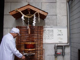 北陸の冬空はどんよりして、雪や小雨が何時降り出してもおかしくない。薄日がさしているときでも地元のひとは傘を差し掛けて通っていく。兼六園をはじめ、市内のあちこちに北陸特有の重い雪から樹木を守る雪吊りが施されている年の暮れ近い日に金沢を訪ねた。銘酒「黒帯」の酒蔵、福光屋さんの見学ができることになり、越後湯沢から「ほくほく線」に乗り換えて直江津で海に出る。、車窓に雪の新潟と富山の日本海を眺めながらの金沢入りである。 加賀百万石の城下町、金沢は伝統と文化の町、加賀宝生の能楽をはぐくみ、古九谷の味わい、加賀友禅のみやびを生み出したこの町で観たいもの、聴きたいものはたくさんあるが、まっさきに向かったのが「金沢蓄音器館」。そこは蓄音器とSPレコードを集めた音の博物館である。係員の説明による蓄音器の聴きくらべが圧巻で、エジソンの蝋管式蓄音器も実際に聴いてみることができる。蓄音器の後は文学散歩。泉鏡花、室生犀星、徳田秋声が金沢三文豪といわれるが、今回は泉鏡花記念館を訪ねてみた。そして冬構えの兼六園と金沢城趾で午後の金沢散歩を締めくくる。 翌朝、福光屋さんのある石引二丁目へは、金沢駅西口から北陸鉄道バスで約20分、小立野という停留場で降りるとすぐ、道の向こう側に「福光屋」の看板が認められる。道路に面した店舗スペースは「SAKE SHOP福光屋金沢本店」で、同社の商品がさまざまなお酒関連グッズとともにセンスの良く配置され目を楽しませてくれる。来意を告げて店内で待つこと数分、常務さんが現れて私たちを二階の別室に案内して下さり、同社の日本酒造りについての説明が始められた。私たちの質問に答えながら、打てば響くように明解で懇切なご説明が続き、最後に福光屋のプロモーション・ビデオを約20分。このビデオがまた素晴らしい映像と解説で日本酒造りの心を語りかけてくれた。ここで常務さんから伺ったお話が今回の旅の目的の核心である。(筆者注:ご興味のある方は別サイト「楽しいお酒のはなし」をご覧ください)。 続いて常務さんの案内で酒蔵見学をした。「寿蔵」という看板が掲げられた酒蔵の入口には「百年水」と名付けられた仕込水が試飲できる井戸があり、地元の方がお茶を淹れるために名水を汲みに来るという。見学は日本酒造りの工程にしたがって、麹づくり、酒母(酵母を育てる)、醪(もろみ)仕込み、そしてできあがりの熟成された醪を絞るところまで、酒蔵の中で順に説明を受け、熟成中のお酒の元を味わい、最後に絞りたての原酒を試飲する場所ではそのおいしさに思わず歓声がもれた。再度レクチャールームに戻ると、テーブルの上に並べられた同社の商品を順に説明を聞きながら試飲するという酒蔵見学の最大の楽しみが待っていた。試飲の中で自分の好みの銘柄を決めた私たちは初めに覗いたショップで思い思いの買い物をして、約3時間の酒蔵見学を終了した。 ![]() あとがき: 昨年は10月23日に中越大地震が起こりました。東京周辺から金沢への鉄道は上越新幹線「越後湯沢」乗換えのほくほく線経由北陸線が便利ですが、12月の半ばになってやっと新幹線が再開するのを確かめて切符を購入した覚えがあります。地震から1年経った現在もまだ復旧作業が続いており、仮設住宅の暮らしをされている方がおられます。一日も早くもとの生活に戻ることができるようにお祈りします。 平成17年10月26日 稲林 記