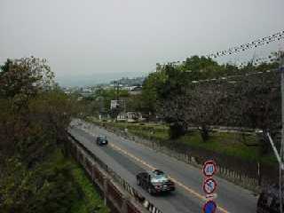 地下鉄の蹴上駅から南禅寺がわへ渡る歩道橋の上から都心を眺めると右手にインクラインの遺構がある。写真の中央に舟を運ぶ台車が見える。