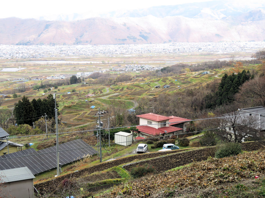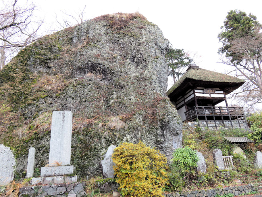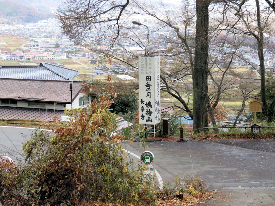 我が心慰めかねつ更科や 姨捨山に照る月を見て 能「姨捨」のモチーフとなった和歌です。題知らず・讀人知らずとして古今集に載った歌をもとに大和物語や今昔物語に説話が残されています。 世阿弥作と伝わる能の「姨捨」はそれらを下敷きにしながらも独自の展開をしていて、単なる棄老悲話に終わることなく、更科の月を背景とした清澄な世界に仏の慈悲を描き、老女の霊が示す一種の諦観とともに深い余韻を持たせています。 十月に観た梅若研能会の能「姨捨」については別のところ(見たり聴いたり)に報告しました。その時の解説で長野県の篠ノ井線に「姨捨駅」があることを知り、十二月初めに姨捨への日帰り旅に出掛けました。 最寄り駅の大宮から長野までは北陸新幹線でひと駅、1時間ちょうどです。さらに長野から篠ノ井線の姨捨までは30分、乗り換え時間を入れても2時間ほどで行くことができました。姨捨駅に着くと列車は一度バックしてホームに入ります。国内では珍しいスイッチバックの駅です。ホームに降りるとはるか下の方に集落が広がっており、駅の案内板が示す右手下方には「田毎の月」で知られる棚田が見られます。 ![]() 姨捨駅ホームからの景色、棚田が見られます 10時35分着の姨捨駅で降りたのは、私たち夫婦だけでした。駅員さんはもちろん居ません。駅舎を出たところで工事をしている人に「長楽寺」へ向かう道を訊くと、線路に沿って50メートルほど戻ったところにある、人道の小さな踏切を教えてくれました。踏切を渡って曲がりくねった道を降りてゆくと10分ほどで長楽寺の標識が見えてきます。 ![]() 姨捨山長楽寺の標識 入口にある観音堂にお参りして境内につながる階段を下ったところに長楽寺の小ぶりな本堂がありました。本堂にお参りして、振り返ると右手に大きな岩があります。姨捨山に取残された老婆が石になった伝えられる姨岩です。想像していた以上の大きさです。その脇、左手には枯れかかった大きな木があります。老婆がその下に取残されたと伝わる「桂」の木でしょう。 ![]() 観音堂(右手)の下にある姨岩 お寺のご住職とみられる方がおられたので、「姨捨山」を尋ねると「姨捨山という名の山はなくて、通称で姨捨山と呼ばれている冠着山はあちらです」と南を指してくれました。境内には多くの歌碑や句碑が並んでいます。 中に「おもかげや 姨ひとり泣く 月の友」の句が記された「芭蕉翁面影塚」があり、芭蕉の「更級紀行」の冒頭の文章が思い出されます。 さらしなの里、おばすて山の月見ん事、しきりにすゝむなる秋風の心に吹きはぎて… ちなみに、長楽寺は「姨捨山長楽寺」で、名月の里信濃三十三番札所第14番です。 月の名所として知られる更科の「月見の宴」にも恰好な姨捨観光会館が長楽寺のすぐそばにありました。 ![]() 姨捨観光会館 私たちが訪ねた日は月齢26日で新月間近、日帰り旅で昼間の景色を眺めるだけでしたが、長楽寺参拝の後は観光会館でうららかな景色を眺めながらゆっくりと更科蕎麦のお昼を楽しみました。その時に味わった「姨捨正宗」の純米酒が旅に風情を添えてくれました。 以上