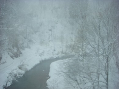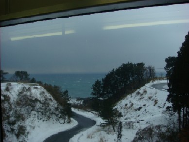 え〜、あちこち歩き、少し前のおはなしになりますが、陸奥は津軽へ、雪の季節に行って来ました。寒いところへは寒い時に、暑いところへは暑い時季に行くというのは旅を楽しむためのセオリーであると言われますが、いざとなるとなかなかそういきません。何を好んで雪の降る時季に津軽へ行くのか?答えはただひとつ、「風雪流れ唄」への憧れです。「よされよされと雪が降る」中で津軽三味線を聴きたいという、通俗的な動機で旅に出かけました。 津軽の中心は弘前の街である。これはどなたも異論はないところです。津軽藩十万石の城下町弘前へのアプローチは東北新幹線で八戸乗換え青森経由の特急というのが便利ですが、今回は雪見が目的なので敢えて盛岡で「はやて」と別れる秋田新幹線「こまち」に乗り込みました。盛岡を出て、雫石を過ぎたころ、田沢湖駅の手前から次第に重くたれ込めていた雪空からもうれつな吹雪が車窓を覆うようになって来ました。 ![]() 目的が目的ですから、雪景色は大歓迎「待ってました!」というところです。角館を過ぎて奥羽線と合流する大曲までは吹雪の中をひた走ります。秋田が近づくにつれていったん雪は消えましたが、秋田で乗り換えて、八郎潟の東を抜けて東能代から五能線に入ると、海岸線に掛かろうとするところで、ふたたび雪の「よされ状態」となりました。 ![]() 五能線はいまや人気のローカル線です。東能代から世界遺産で有名になった白神山地の西側、海岸線を大回りして深浦、鯵ヶ沢から五所川原を経て川辺で再び奥羽線に合流して弘前へ向かう「リゾートしらかみ」という全車指定席の特別列車が秋田、弘前の間を毎日二往復しています。私たち夫婦が乗ったのは「青池」というニックネームで、秋田発11:05、弘前着15:50というダイヤのジーゼル・カーでした。途中、景色のよいところでは徐行をしてくれて、さらに一箇所、「千畳敷」駅では10分間の停車時間に、駅前の名所「千畳敷」を散策できるという大サービスです。 ![]() 秋田と弘前の間は奥羽線の特急で2時間のところですが、リゾートしらかみは5時間近くかけてゆっくりと走ってくれますので急ぐ人は乗りません。乗客はすべて観光客でした。五所川原からはこの時季、太宰治記念館のある金木へ向かう津軽鉄道に名物のストーブ列車が運行されているとのことで、そちらへ向かうひとも見られました。 五能線でひとつだけ問題がありました。それは車内販売がほんの少ししかお弁当を積んでいないことです。途中に駅弁を売っているようなしっかりした駅はありません。秋田の乗換えで「はたはた弁当」というのをひとつだけ買っておいた私達はそれを分け合って、我慢しました。 予定通り、午後4時前に弘前について、ホテルにチェックインした後、街の雰囲気を味わいがてら夕食目的の散歩に出掛けました。ホテルから10分程歩いた所が弘前のお城です。そこまでの道を確認してから引き返し、途中で目についたお店に寄って、民芸品などを物色しました。 ![]() 弘前市内には津軽三味線の実演を見ることのできるお店が何軒かありますが、そのうちの1軒に見当をつけて電話を入れました。散歩をしているうちに予約をしておいた居酒屋さんが見つかったので、頃合を見て店に入ると、早くも、半分ほどの席がお客さんで埋まっています。まずは地の魚を注文して、寛いだ気分で食事をするうちに時刻になり、お待ちかねの津軽三味線ライブが始まりました。このころには、お店も満員になっています。 ![]() この日の演奏者はこのお店専属の若手のひとりでした。曲は「津軽よされ」から始まって、「黒石よされ」、「あいや節」、「じょんがら節」まで30分ほど、とてもよい雰囲気で本場の津軽三味線を味わうことができました。 次の日は朝のうち晴れていて、朝食をとったホテル最上階のレストランからは雪に覆われた岩木山がはっきりと見えましたが、間もなく曇ってきて、市内散策に出かける頃は早や雪模様となりました。この時季、2月終わりから3月初めにかけて、いつでも雪が舞い始めるというのがこの地の気候のようです。 弘前の街は、以前一度だけ仕事で来たことがありましたが、そのときは駅から客先の往復だけで何も見ていません。今回、歩いてみて古い教会や木造の洋館が数多くあることに気がつきました。