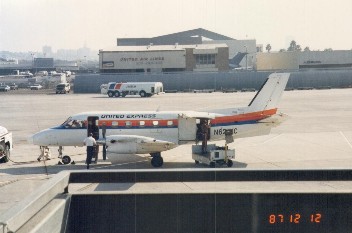 更手続きをしました。代替便はロサンゼルスで乗り換える乗り継ぎ便です。今度は鉄道に変えるわけに行きません。LAからNYは直行便ですが、LAまではどんな飛行機になるのかなあと少し不安がよぎりました。座席の予約をするときに初め「通路側」というと「OK」、気が変わって「いや、窓側にする」というと今度も機嫌よく「OK!」と言ってくれたが・・・と、ふと待合室のガラス越しに見える小さな飛行機に積み込んでいるスーツケースが見覚えのある自分のもののようです。「そんなことはない、あんな小さな飛行機はこの辺の遊覧飛行機だろう」と心の中で、強く否定しましたが、いざ搭乗案内を受けてみると、やはりあの貧相な小型機でした。「通路側」も「窓際」もありません。乗ってみたら通路を挟んで1列づつの座席でした。してみると、あの座席予約係はそれを知っていて、機嫌よく「OK」、「OK]と言っていたんだ。そう思うと腹立たしく、急に情けなくなりました。カリフォルニアの山腹に不時着などなければよいが、満員の乗客の半分はUAの制服を来ています。どうやら、SDからLAへ乗務員を移送する社内便のようです。そこに気が付いて少し安堵が生まれましたが、低い高度で下の高速道路を走る自動車と競争しているのはあまりいい心持ではありません。何とか、無事にLAで大型機のNY行き直行便に乗り換えましたが、そのときさっきの小型機で私の後ろの座席にいたアメリカ人の若者が近くの座席に居たので、「やあ、さっきはどうだった?」と訊いたら、彼も「怖かった」と言っていました。