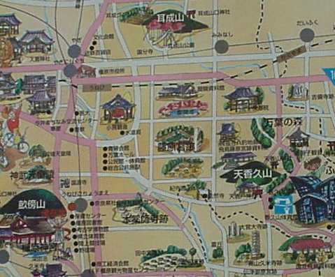 大和三山の位置関係を示す案内図(近鉄「畝傍御陵前」にて)