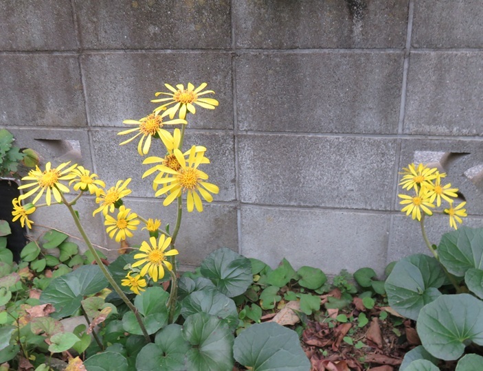 庭のすみにツワブキがひっそり咲いています。 (2025年11月末 撮影)