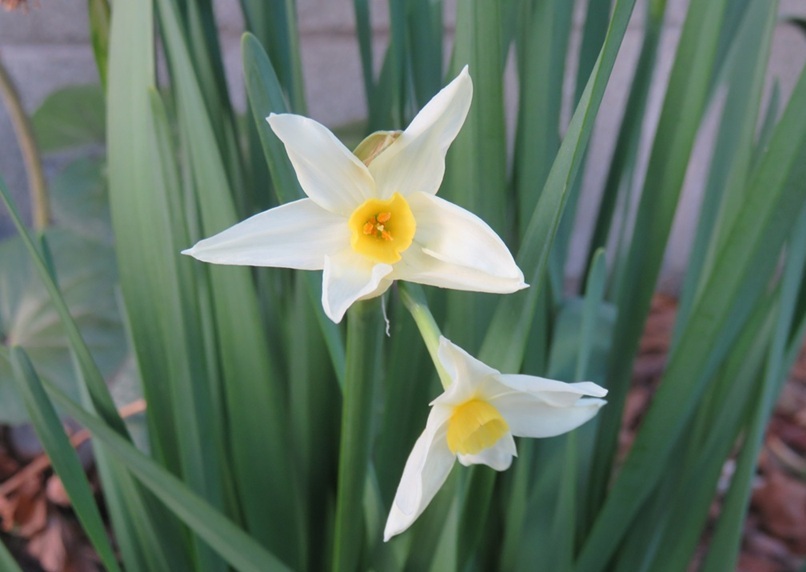 毎年咲いてくれる水仙が、いまはこの二輪だけです。