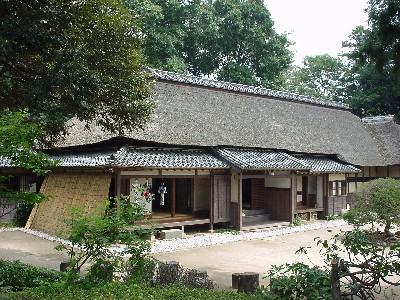 宮内先生によるレクチャーは今年も同じ会場、「浦和くらしの博物館民家園」の講座室で8月10日の午後2時から4時まで行われました。「民家園」は見沼くらしっく館と同じ「さいたま市立博物館」のひとつで、見沼田んぼのちょうど中央にあたる場所にあります。左の写真は入り口からの眺めで、船着場の奥の白い壁の建物が管理棟で、講座室はその中にあります。30名の定員いっぱいに集まった、やや平均年齢の高い聴衆を前に、宮内先生の迫力溢れる講義が始まりました。