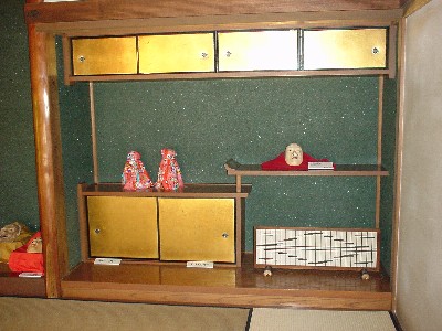 ![]() 手前の座敷の棚には「赤もの」コレクション |