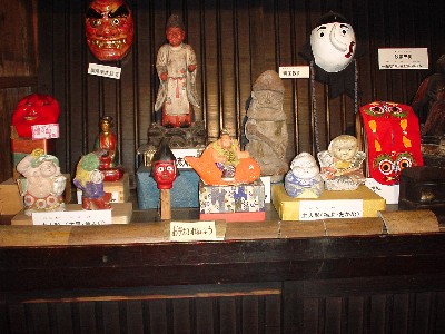 ![]() 二階の屋根裏部屋にはどてらを着込んだ竈神(かまどがみ)と大黒面 |