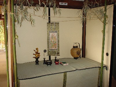 ![]() 入り口の馬屋の鴨居には七夕人形が揺れています。 |