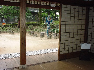 ![]() 七夕人形が掛けられた縁側を座敷から。 |