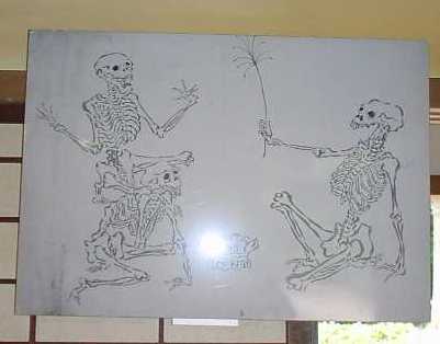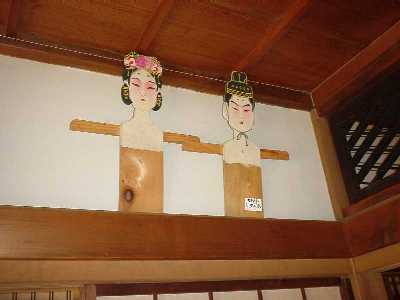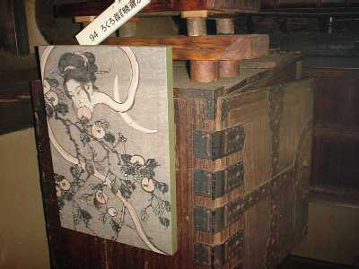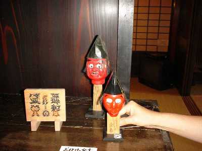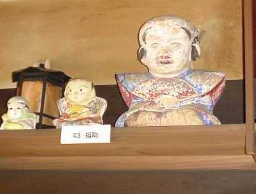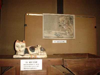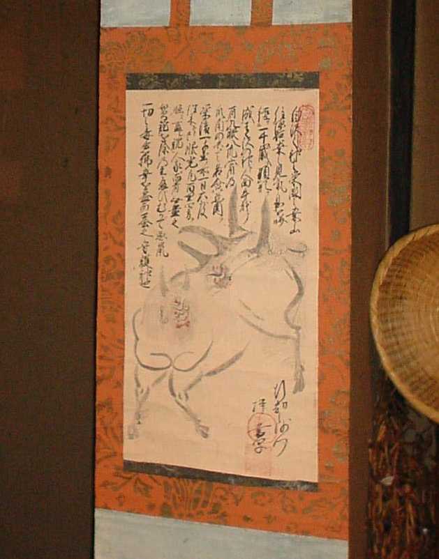 「若いもの」は物を知りませんからねえ。疱瘡の外で、物の怪の常連はお蚕(かいこ)、そうです、絹糸を採る蚕ですが、これをネズミが食べてしょうがない。猫はもちろん駆り出されますが、それだけじゃあ、まだ安心できない。ネズミ避けというのもいろいろな物の怪の力を借りています。その中でも圧巻が中国から伝わったという「白沢(はくたく)」という人間の顔と牛の頭が前後についた、想像上の神様は今ではすっかり廃れてしまったそうですが、古い掛け軸(右の写真)などでまだその姿を見ることができます。それから、恐ろしいというより可哀相、悲惨なことなのですが、その昔は子供が大勢生れると育ててゆけないので、ついつい水子が出来てしまう。水子の魂百までも?そんなのんきな洒落を言える場面ではありません。東北で観光客を魅了しているあの「こけし」でさえ、背後に「水子の霊」を宿していると聞けば、「こけし」を並べて喜んでもいられません。水子の霊を弔い、冥福を祈るという信仰にも物の怪との接点を感じ取れるようになれば、あなたの「物の怪道」も相当のレベルに達しているといえます。